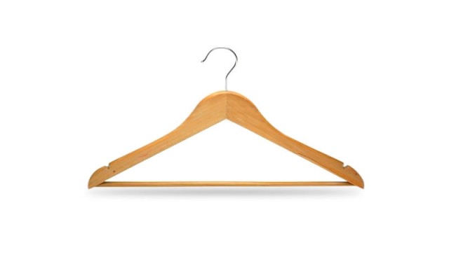 Perchas de madera anatómicas lustradas súper resistentes ideales para hotelería o comercio.
