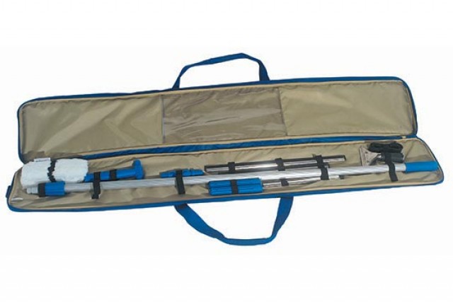 Estuche con equipos de limpieza de vidrios básicos.