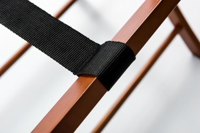 Práctico apoya maletas de Madera con 4 cinchas negras, ofrece soporte resistente. Ideal para hotelería. Función plegable para almacenamiento compacto y fácil de transportar. Material: Madera de guatambú de primera calidad.Lustrada.Colores disponibles.